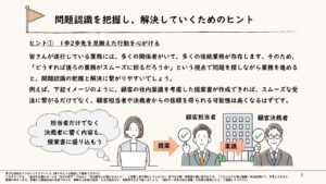 指示待ちの卒業は、本人の自覚だけでなく、組織がプロとしての基準を明確に示すことで加速します。2年目という時期をただの慣れで終わらせるのか、一生モノの土台を作る期間にするのか。その教育的な投資は、数年後の組織の強さを決定づけるはずです。